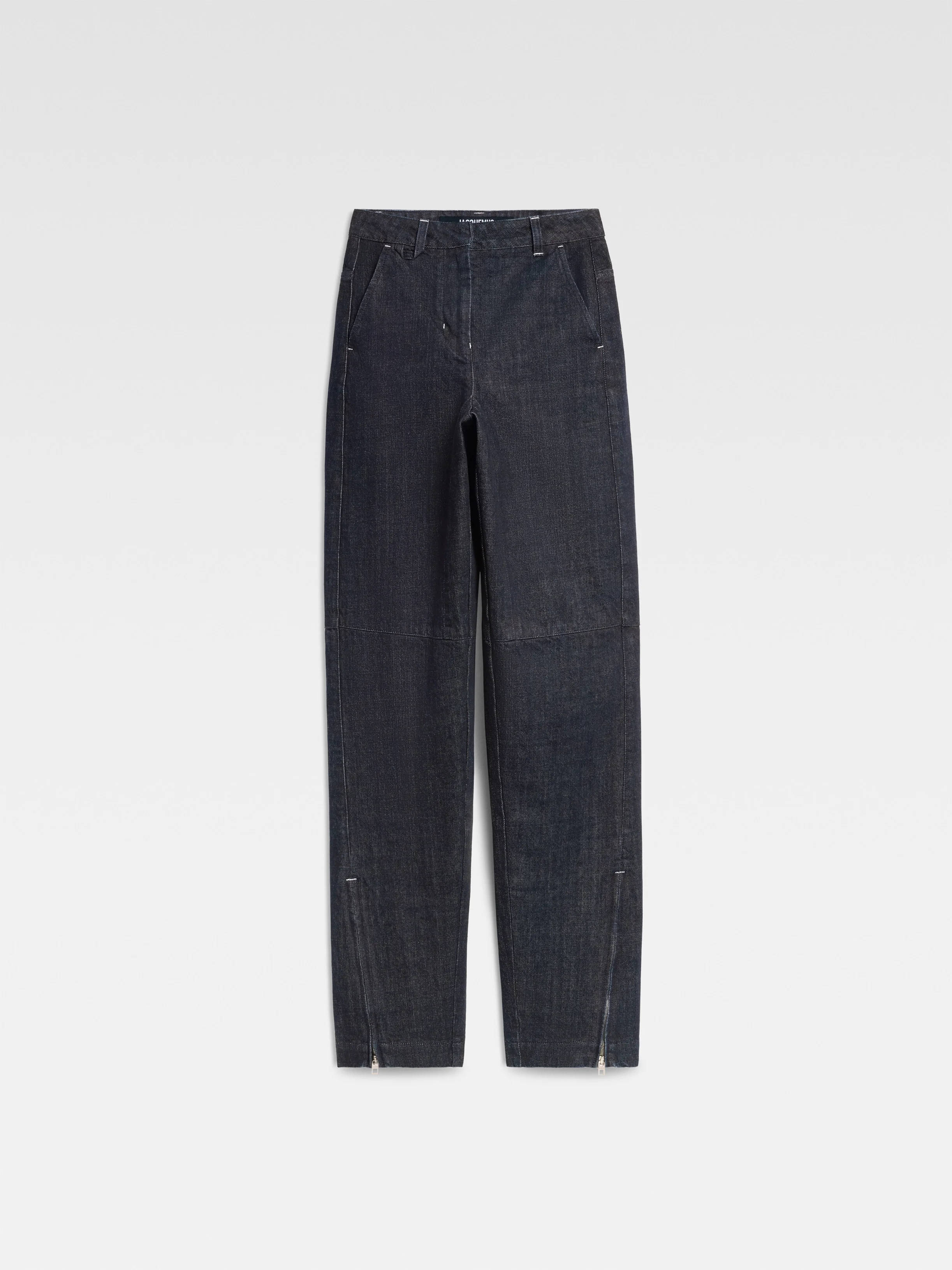 Curved cargo jeans - High-rise - Dark navy cotton denim - Long curved leg - “J” belt loop - Zip fly - Four pockets including two cargo pockets - Front zipper on each leg - Contrast stitching and bartacks - Embroidered patch on back waistband - Laser printed signature logo The model is 177cm and wears a size 24 100% Cotton / Lining: 65% Polyester - 35% Cotton Made in Italy Ref. 251DE062-1782-390