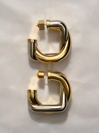 Intertwined hoop earrings - Large earrings in silver and gold-toned brass - Intertwined circle and square shapes - Smooth texture - Circle and square push-backs with engraved logo 100% Brass Made in Italy Ref. JWW00760AOT4005276
