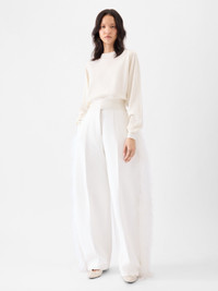 Embroidered knit sweater - Relaxed fit - Merino wool knit - Ribbed collar, cuffs and hem - Overlock stitching below the collar - Long loose sleeves - Embroidered logo on the back The model is 179cm and wears a size 34 96% Merino Wool - 4% Polyamide Made in Portugal Ref. SWW00632AK00299110
