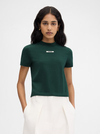 Grosgrain logo t-shirt - Fitted shape - Stretch cotton - Ribbed crew neck - Embroidered grosgrain logo on chest The model is 175cm and wears a size XS 94% Cotton - 6% Elastane Made in Portugal Ref. 241JS133-2031-591