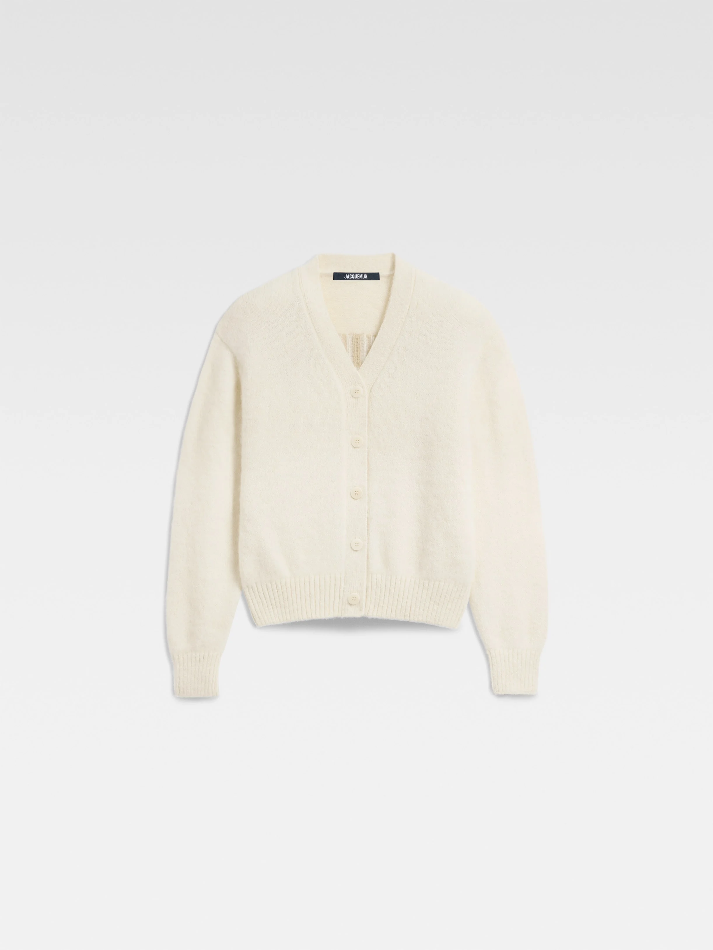 Jacquard logo cardigan - Relaxed fit - Alpaca wool blend - V-neck - Long sleeves - Ribbed cuffs and hem - Signature jacquard logo on back The model is 173 cm and wears a size S 56% Alpaga wool - 34% Polyamide - 10% Merino Wool Made in Portugal Ref. 251KN622-2329-130
