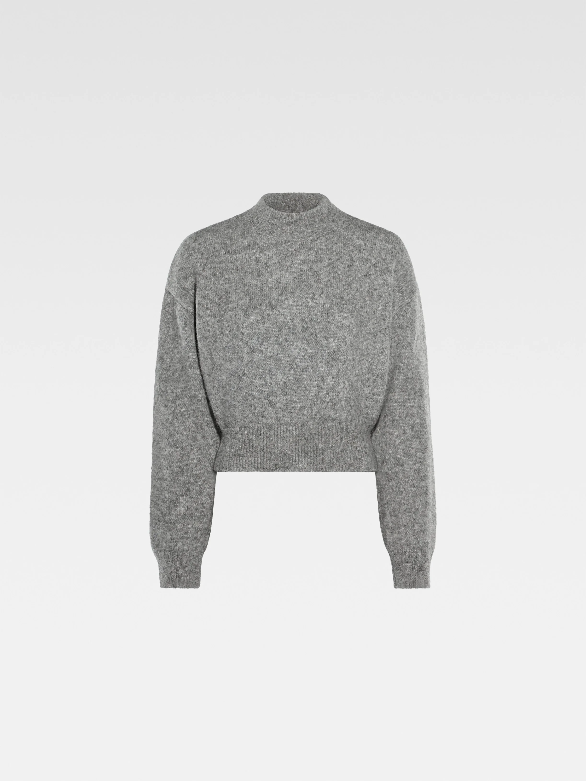 Les Classiques Logo jumper - Cropped, loose fit - Brushed alpaga knit - Crew neck - Fitted ribbed collar, cuffs and hem - Contrast jacquard logo on the back The model is 171 cm and wears a size XS 68% Alpaga wool - 22% Polyamide - 10% Merino wool Made in Portugal Ref. SWW00353AK00151950