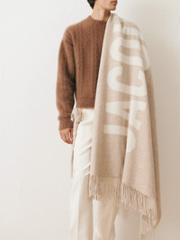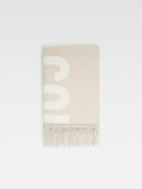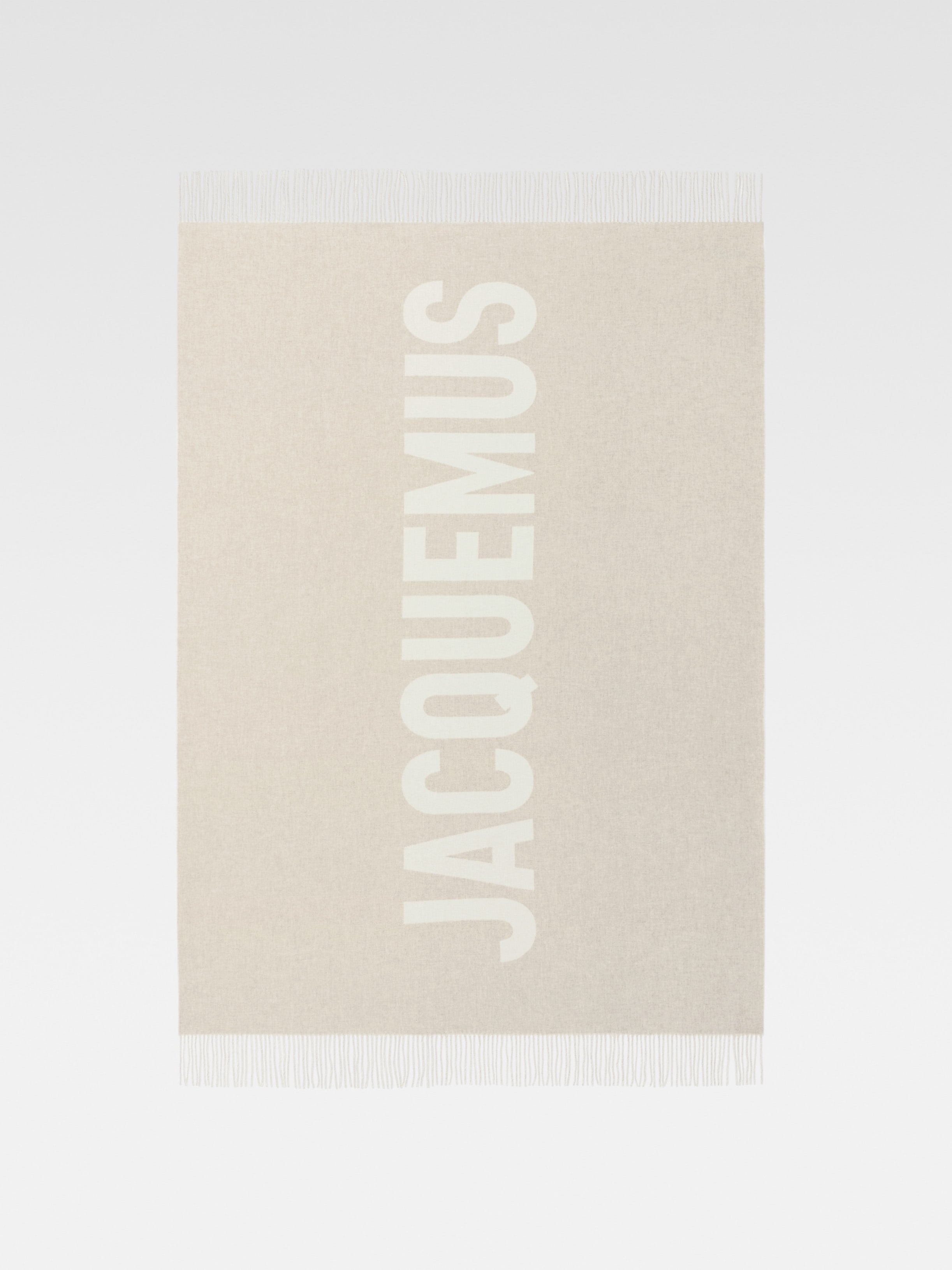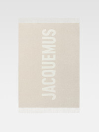 WINTER RETREAT Plaid with logo - Wool plaid - Solid color yarn - JACQUEMUS logo in contrasting jacquard - Dimensions: 140cm x 200cm - 15cm fringes on each end 100% Virgin wool Made in Italy Ref. 246AC713-5007-015
