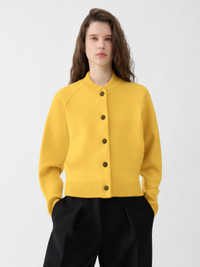 Knit bomber - Rounded shape - Compact merino and Lycra knit - Ribbed teddy collar, cuffs and hem - Raglan sleeves - Contrast horn buttons - Embroidered “J” on the side - Slit pockets The model is 180cm and wears a size 34 96% Merino wool - 4% Polyamide Made in Bulgaria Ref. CDW00821AK00185250