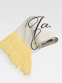 Knitted 50’s logo scarf. - Tricolor wool-merino scarf - Contrast 50s’ jacquard logo - Contrast fringe - Dimensions: 22 x 160cm (including fringes) 100% Merino wool Made in Italy Ref. 255AC727-2200-2CG