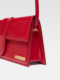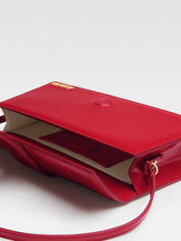 Long flap bag - Patent leather structured shoulder bag - Magnetic flap tab closure - Slim shoulder strap - Back patch pocket - Interior card pocket - Gold metal logo and hardware - Fully lined in cotton - Dyed edges - 28 x 13.5 cm Each leather is unique and has been carefully selected by our team. Irregularities and variations in shade are natural. To maintain the original condition of this item, we recommend to avoid direct and over-exposure to light and contact with cosmetics, water or heat. We advise to store this item into the dust bag in a dry place. 100% Calf leather / Lining - 100% Cotton Made in Italy Ref. 221BA013-3128-47G