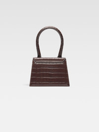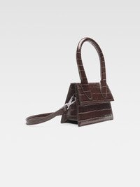 Leather handbag - Crocodile-embossed shiny leather bag - Reinforced handle - Magnetic flap closure - Long removable strap - Interior pocket - Silver metal logo and hardware - Fully lined - Painted edges - 18 x 13.5 cm Each leather is unique and has been carefully selected by our team. Its irregularities and color variations are natural. To preserve the original condition of this piece, we recommend keeping it out of the sun and away from cosmetics, water and heat sources. It can be stored in its pouch in a dry place. 100% Calfskin / Lining: 100% Cotton Made in Italy Ref. 213BA002-4301-880