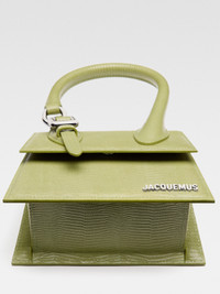 LA CROISIERE Signature buckled handbag - Lizard-embossed leather structured bag - Reinforced handle with gold metal buckle - Magnetic flap closure - Long removable strap - Engraved lobster clasp - Interior pocket - Silver metal logo and hardware - Fully lined in cotton - Dimensions: 18 cm x 13.5 cm Each leather is unique and has been carefully selected by our team. Irregularities and variations in shade are natural. To maintain the original condition of this item, we recommend to avoid direct and over-exposure to light and contact with cosmetics, water or heat. We advise to store this item into the dust bag in a dry place. 100% Calfskin / Lining: 100% Cotton Made in Italy Ref. 233BA327-3235-550