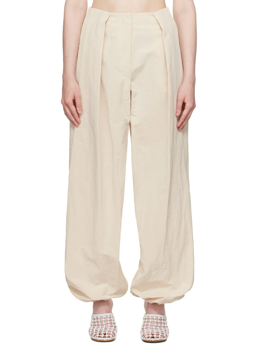 Wide-leg crinkled nylon-blend taffeta trousers. · Mid-rise · Belt loops · Four-pocket styling · Zip fly · Draped pleats at front · Press-stud fastening at gathered cuffs · Notch at back waistband · Logo locker loop at back waist Part of the La Croisiere collection. Supplier color: Off-white Body: 68% polyamide, 32% polyester. Lining: 55% cotton, 45% polyester. Made in Bulgaria 251553F087014