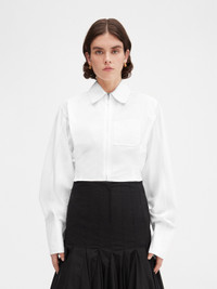 Cropped zipper shirt - Cropped fitted shape - Cotton poplin - Pointed collar - Zipper closure - Front and back seams - Asymmetric “J” shaped chest pocket - Long sleeves - Snap button cuffs - Reinforced side slits - “J” locker loop - Back yoke - Peplum in the back The model is 173cm and wears a size 34 100% Cotton Made in Bulgaria Ref. 251SH080-1520-100