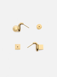 LA CASA Asymmetric stud earrings - Plated brass with a smooth finish - Suspended and mismatched 3-D sphere and square rhinestoned charms - Engraved circle and square push-backs - Weight: 6.9g 100% Brass Made in Italy Ref. JWW00715AOT4005280