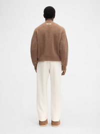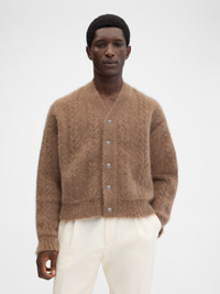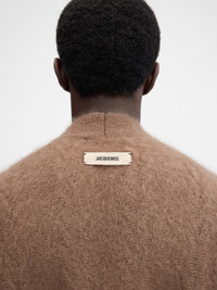 WINTER RETREAT Mohair buttoned cardigan - V-neck buttonned cardigan - Relaxed fit - Twisted pattern - Silver buttons fastening - Ribbed cuffs and hem - Silk JACQUEMUS label on back Men: The model is 185cm and wears a size M Women: The model is 175cm and wears a size S 81% Mohair - 17% Polyamide - 2% Elastane Made in Italy Ref. 246KN533-2019-830