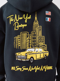 Logo hoodie - exclusively sold online and in our New York boutique - Brushed fleece hoodie - Oversized fit - Ribbed collar, cuffs and hem - Hood with silver metal drawstrings - Embroidered JACQUEMUS logo on front - NYC Cab print on back - Boutique address embroidered on back - Satin-finish France flag on back - United States flag embroidered on back - Exclusive model designed for the JACQUEMUS boutique in New York 100% Cotton Made in Portugal Ref. HOM00418AJ000283GM