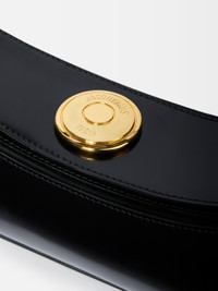 Folded shoulder bag - Shoulder bag in glazed leather - Slim shoulder strap - Magnetic flap with large engraved snap fastener - Fully lined in cotton - Interior card pocket - 13.7 in x 3.9 in x 1.5 in Each leather is unique and has been carefully selected by our team. To maintain the original condition of this item, we recommend to avoid direct and over-exposure to light and contact with cosmetics, water or heat. We advise to store this item into the dust bag in a dry place. 100% Calf Leather / Lining: 100% Cotton Made in France Ref. BAW00438AC18A01990