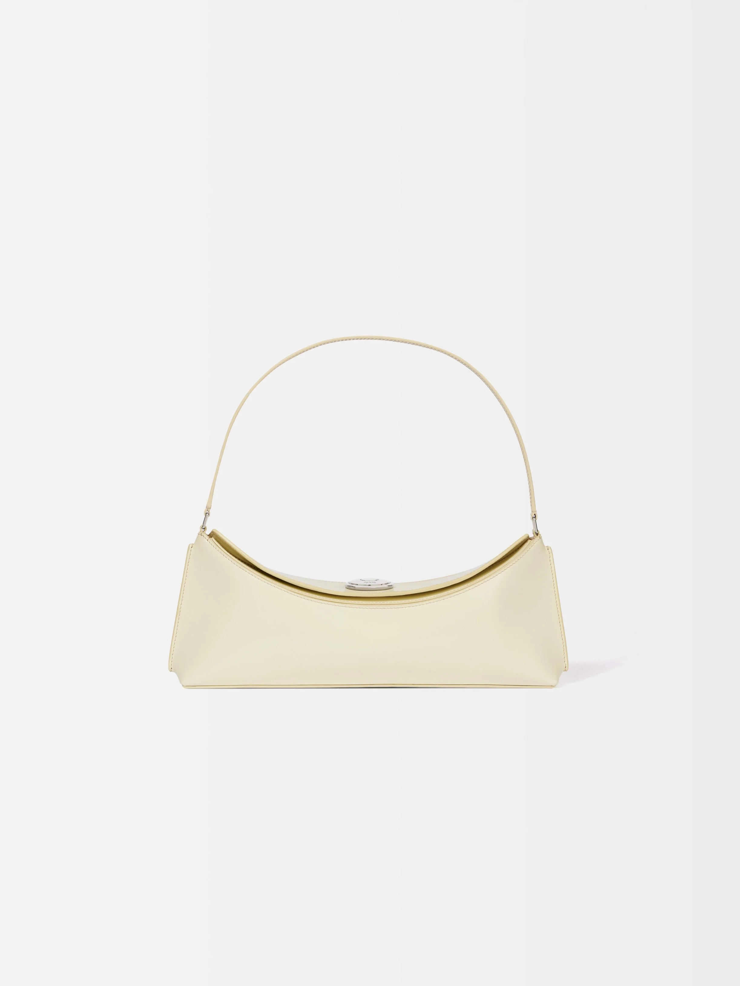 Folded shoulder bag - Shoulder bag in glazed leather - Slim shoulder strap - Magnetic flap with large engraved snap fastener - Fully lined in cotton - Interior card pocket - 13.7 in x 3.9 in x 1.5 in Each leather is unique and has been carefully selected by our team. To maintain the original condition of this item, we recommend to avoid direct and over-exposure to light and contact with cosmetics, water or heat. We advise to store this item into the dust bag in a dry place. 100% Calf Leather / Lining: 100% Cotton Made in France Ref. BAW00438AC18A01220