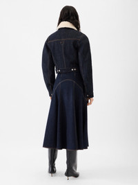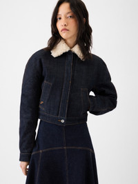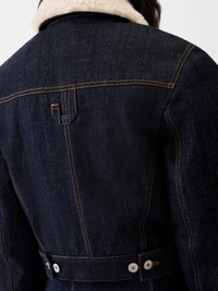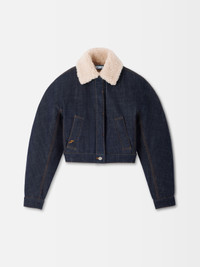 Denim aviator jacket - Straight fit - Rinsed raw indigo denim - Contrast stitching - Faux fleece pointed collar - Rounded sleeves - Hidden button closure - Welt pockets with embroidered “J” - Square buttoned cuffs - Back yoke with “J” loop - Adjustable tabs on the hem - Fully lined with faux fleece - Engraved metal buttons The model is 179cm and wears a size 32 100% Cotton Made in Romania Ref. OUW00105AD00036390
