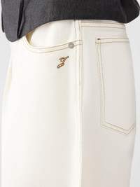 High-waisted curved jeans - High-rise - Ecru denim - Belt loops - Zip fly with engraved metal button - Five pockets including ticket pocket - Embroidered “J” on the hip - Darts on the hip - Long curved leg - Embroidered patch on the back - Back yoke - Darts on the back hem 100% Cotton / Lining: 100% Cotton Made in Italy Ref. PAW00609AD0004011C