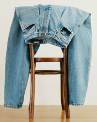 High-waisted curved jeans - High-rise - Stonewashed indigo denim - Belt loops - Zip fly with engraved metal button - Five pockets including ticket pocket - Embroidered “J” on the hip - Darts on the hip - Long curved leg - Embroidered patch on the back - Back yoke - Darts on the back hem The model is 171cm and wears a size 25 100% Cotton / Lining: 65% Polyester - 35% Cotton Made in France Ref. PAW00609AD0003833C