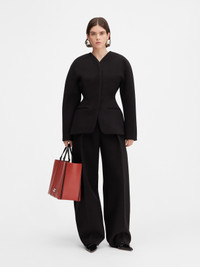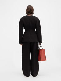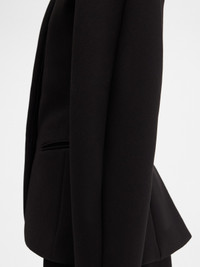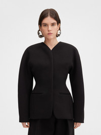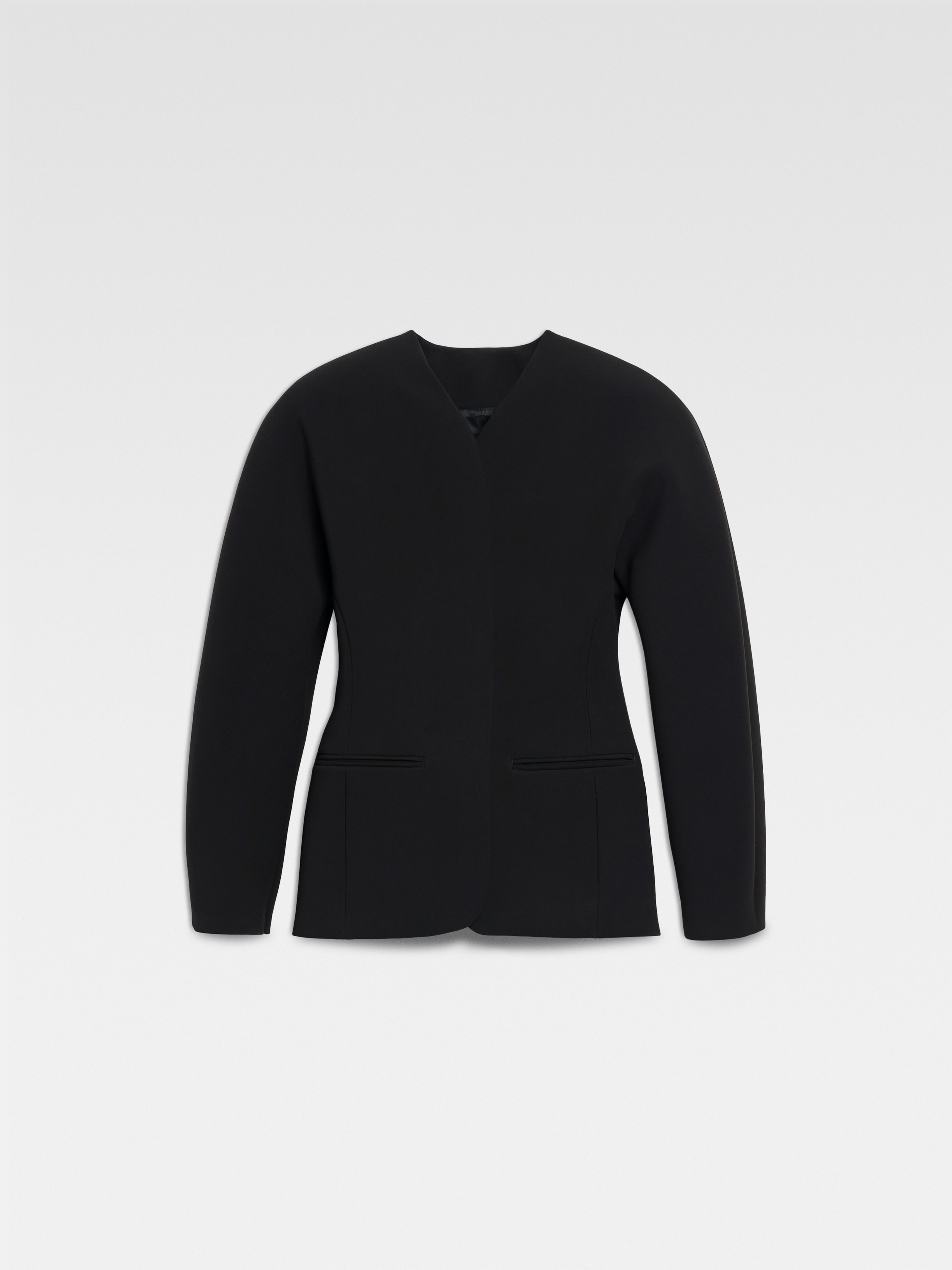 LA CROISIERE Fitted jacket - Tailored fit - Stretch viscose blend - Collarless - Rounded shoulders - Long sleeves - Hidden button closure - Fitted waist - Jet pockets - Buttoned sleeves - Open back slit The model is 173cm and wears a size 34 62% Polyester - 33% Viscose - 5% Elastane / Lining: 48% Cotton - 47% Acetate - 5% Elastane Made in Bulgaria Ref. 241JA045-1718-990