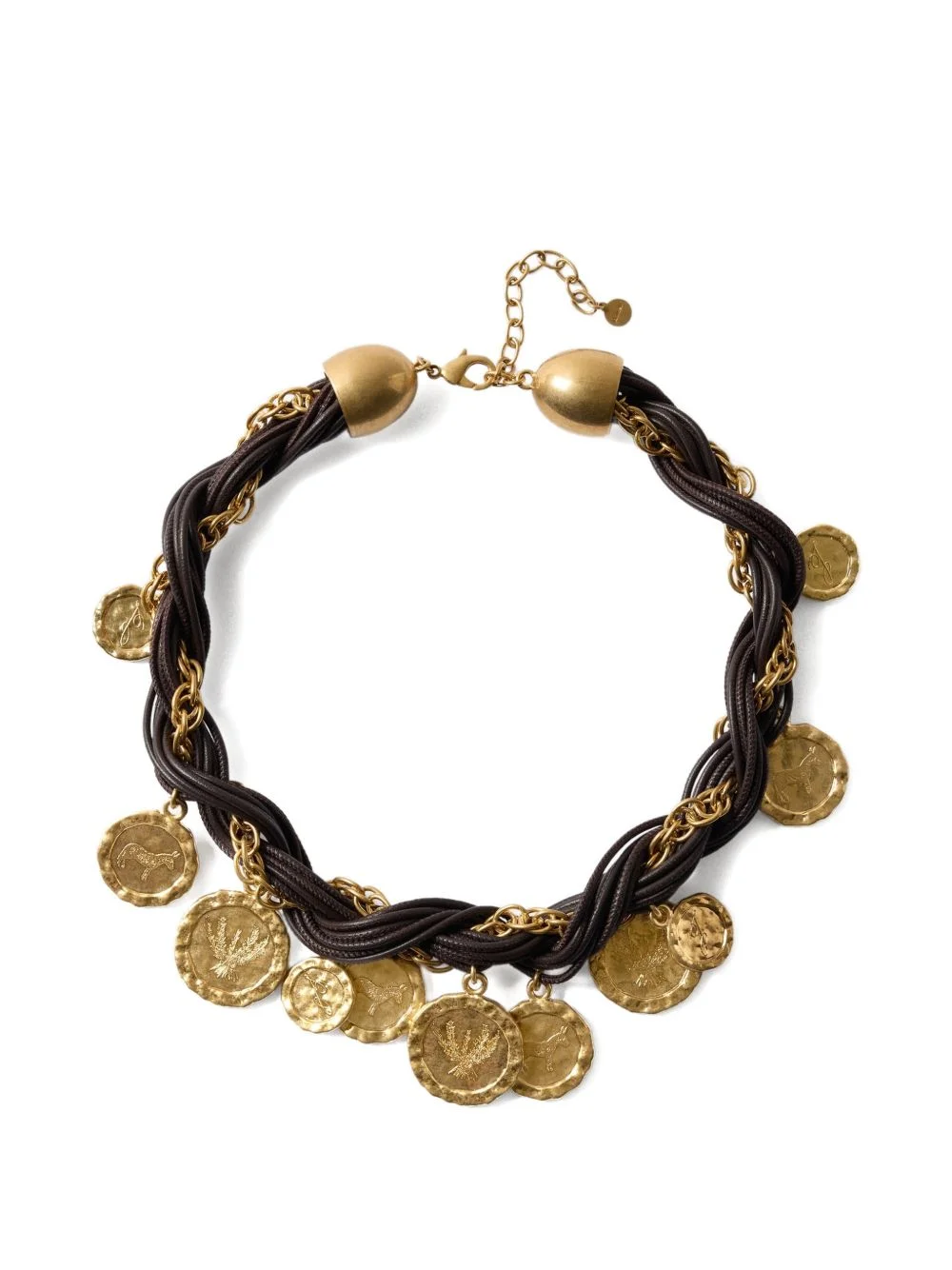 The Pieces necklace Highlights - Gold-tone - Leather detailing - Coin pendants - Clasp fastening Made in Italy