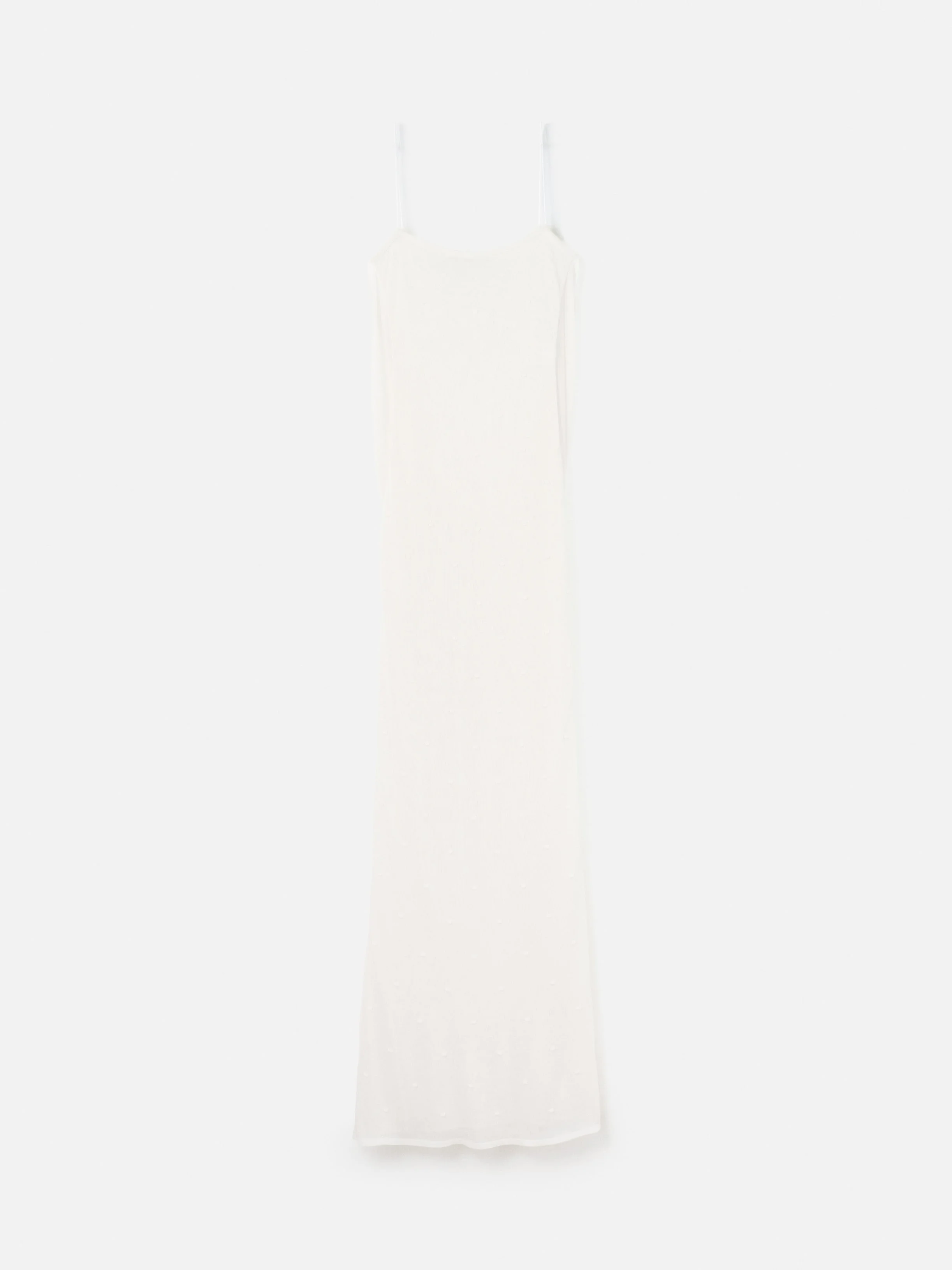 Draped sheer dress - Fitted shape - Transparent jersey with textured polka-dot motif - Spaghetti straps - Straight neckline - Ankle length - Draped cowl back - Lined in the same material The model is 180cm and wears a size 34 100% Viscose Made in Portugal Ref. DRW00813AK00317110