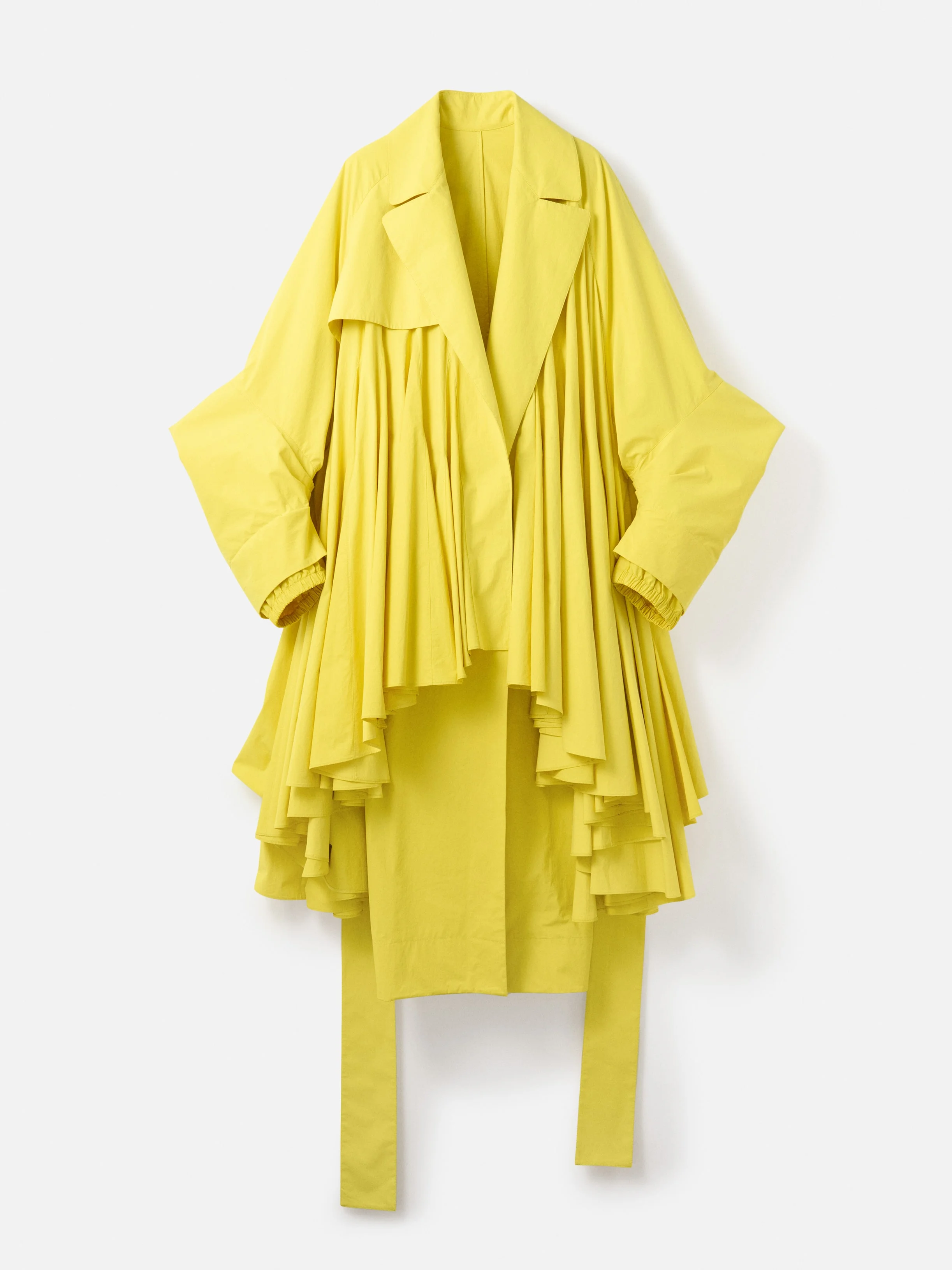 Godet trench coat - Oversized, layered trench coat - Double-sided cotton poplin - Wide notched lapel - Dropped raglan shoulders - Storm flap on one side - Long sleeves with elbow pleats and elasticated cuffs - Ankle length under layer The model is 178cm and wears a size 34 100% Cotton Made in France Ref. COW00135AW00771250