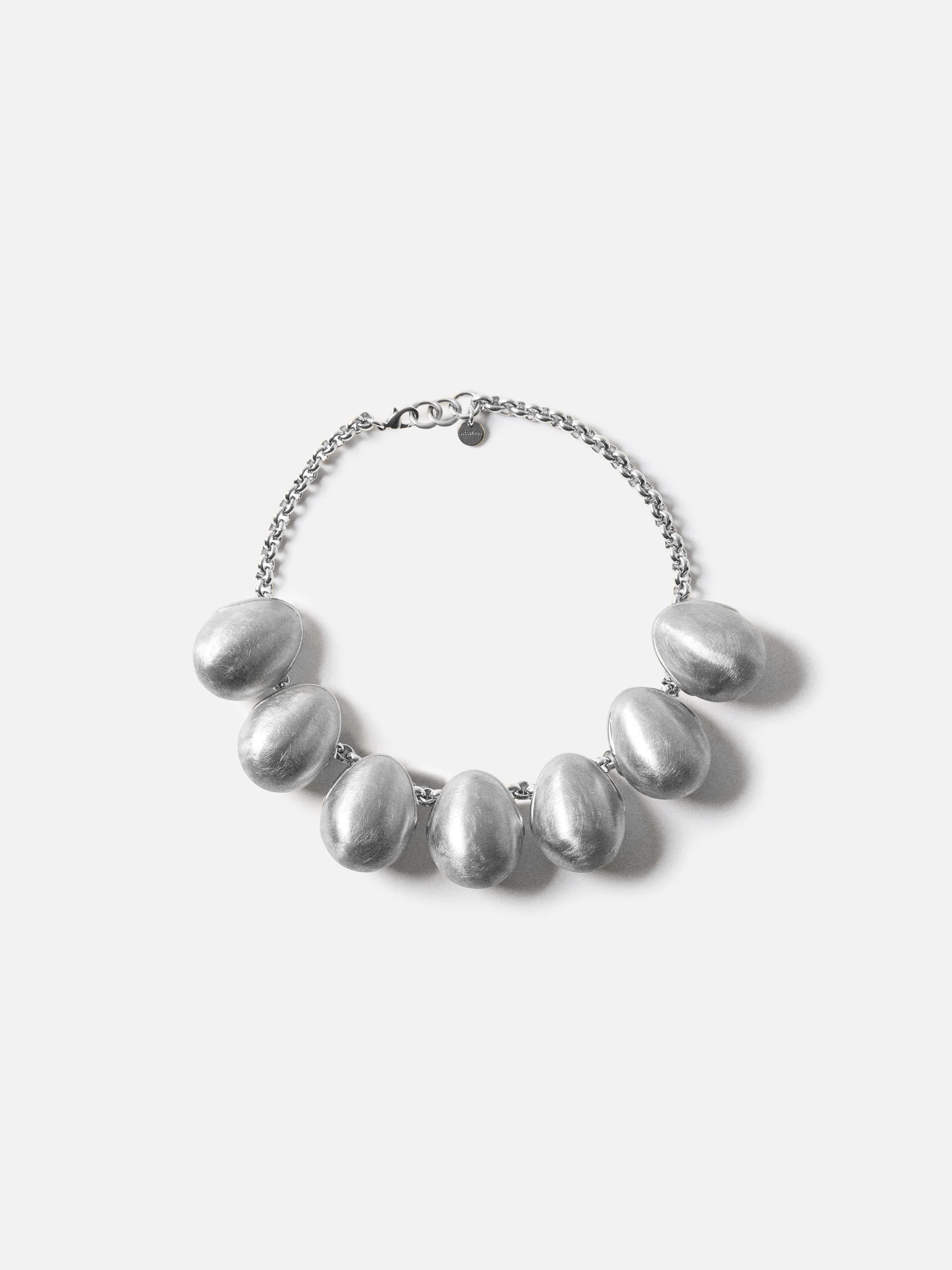 Grape charm necklace - Grape charm necklace in silver-toned copper - Convex oval charms - Adjustable chain - Engraved logo charm - Brushed texture 95% Copper - 5% Brass Made in Italy Ref. JWW00788AOT4063980