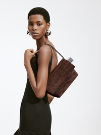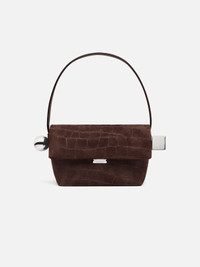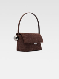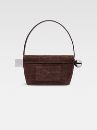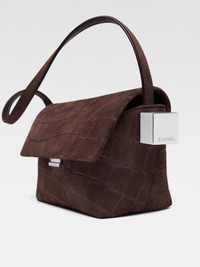 Shoulder bag with flap - Soft bag in crocodile-embossed crust leather - Shoulder handle - Unfolds to access contents - Silver sphere and cube clasps - Magnetic closure - Patch pocket on back - Inside pockets, including one patch pocket and one zipped pocket - Silver logo and metalwork - Fully lined in cotton - Length: 27.5 cm (36 cm unfolded) - Height: 14.5 cm - Width: 11.5 cm Each leather is unique and has been carefully selected by our team. Irregularities and color nuances are natural. To preserve the original condition of this item, we recommend avoiding overexposure to direct light and contact with cosmetics, water or heat. We recommend keeping this item in its pouch and in a dry place. 100% Calfskin / Lining: 100% Cotton Made in Italy Ref. 243BA383-3243-880