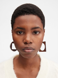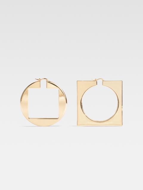 WINTER RETREAT Asymmetrical hoop earrings. - Hoop earrings in silver-plated brass with a mirror-effect - Flat square and circle shapes - Covered with a plexiglass plate for mirror effect - Smooth finish - Hinge clasps - Diameter: 5cm - Weight : 21,90g 90% Brass - 10% Plexiglass Made in Italy Ref. 233JW639-5219-989