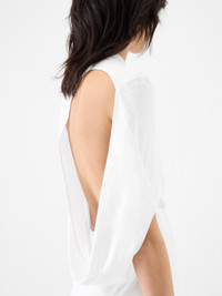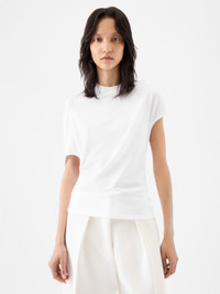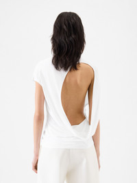 Open-back t-shirt - Stretch jersey t-shirt - Fitted cut - Hip length - Zebra Arty print - Crew neck - Asymmetrical short sleeves - One bare shoulder on back - Asymmetrical open-back with draped waist The model is 179cm and wears a size XS 64% Lyocell - 32% Cotton - 4% Elastane Made in Portugal Ref. 251JS236-2476-100