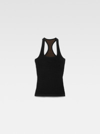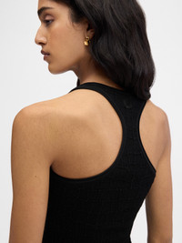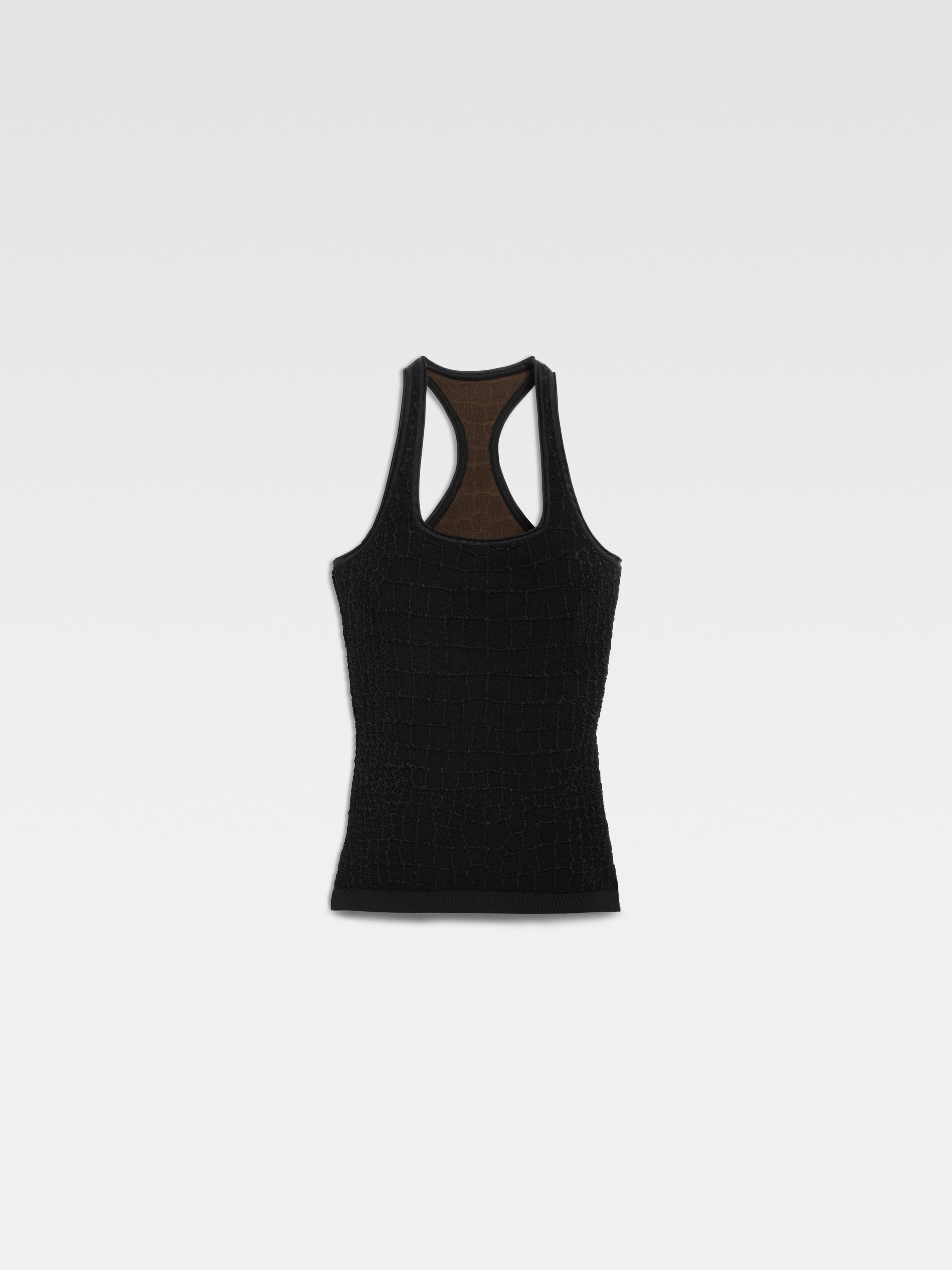 Racerback tank-top - Fitted shape - Crocodile embossed stretch viscose - Square neckline - Raceback - “J” locker loop The model is 175cm and wears a size XS 72% Viscose - 25% Polyamide - 3% Elastane Made in Portugal Ref. 251KN587-2429-990