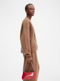 WINTER RETREAT Small shoulder bag - Small structured bag in spazzolato leather - Chain shoulder strap - Inside patch pocket - Silver logo and chain - Zipper closure - 23.5 cm x 11.5 cm 100% Calfskin / Lining: 100% Cotton Made in Italy Ref. 243BA404-3128-470