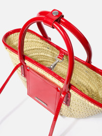 Mini beach basket bag - Handwoven basket bag with spazzolato leather details - Soft construction - Removable cross-body strap - Top handle - Folded edges - Front flap pocket - Shiny silver metal logo and studs - Height 34 cm - Length 17 cm Each leather is unique and has been carefully selected by our team. To maintain the original condition of this item, we recommend to avoid direct and over-exposure to light and contact with cosmetics, water or heat. We advise to store this item into the dust bag in a dry place. 100% Palm / 100% Calf leather Made in Morocco Ref. 223BA044-3259-470