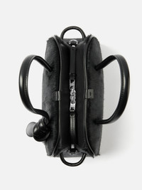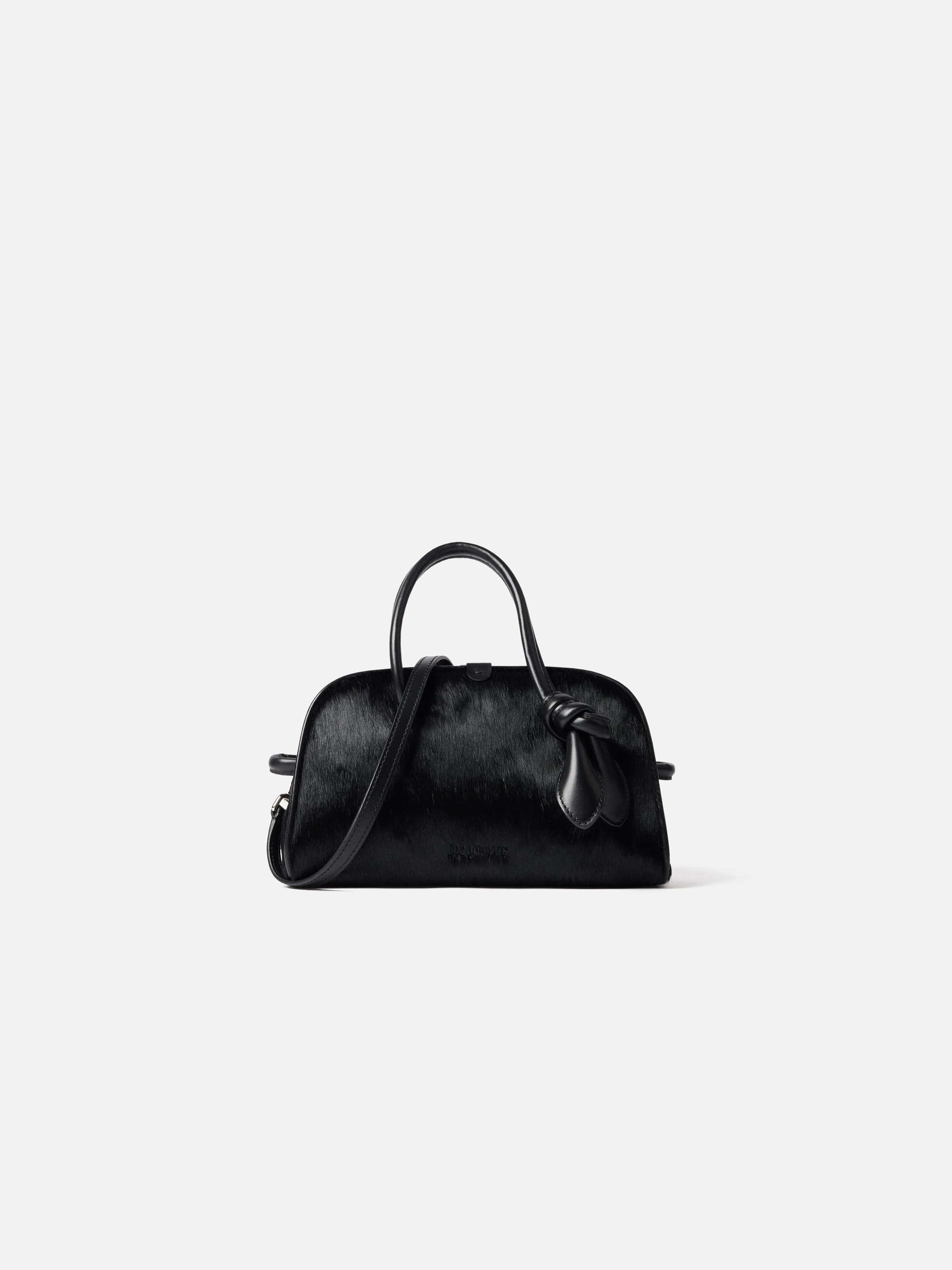 Small soft bowling bag - Bowling bag in pony hair and smooth leather - Two top handles - Two-way zip closure - Detachable and adjustable shoulder strap - Tied bow detail - Engraved lobster clip - Embossed logo - Interior pocket - 26 x 16 x 11 cm Each leather is unique and has been carefully selected by our team. To maintain the original condition of this item, we recommend to avoid direct and over-exposure to light and contact with cosmetics, water or heat. We advise to store this item into the dust bag in a dry place. 100% Cow leather Made in Italy Ref. BAW00416AC10C03990