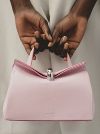 Small folded bag - Small soft bag in goat leather - Magnetic closure with silver-tone metal half-donut - Adjustable and removable shoulder strap - Embossed JACQUEMUS logo on front - Protective metal base - Interior patch pocket in leather - Lamb leather lining - 24 cm x 14 cm x 7.5 cm Each leather is unique and has been carefully selected by our team. To maintain the original condition of this item, we recommend to avoid direct and over-exposure to light and contact with cosmetics, water or heat. We advise to store this item into the dust bag in a dry place. 100% Goat leather / Lining: 100% Lamb leather Made in Italy Ref. BAW00440AC03G02405