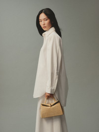 Small folded bag - Handbag in crocodile embossed suede - Folded shape - Single top handle - Magnetic metal half-doughnut closure - Adjustable and removable shoulder strap - Embossed logo on the front - Metal base studs - Interior patch pocket - Lambskin lining - 24 x 14 x 7.5 cm Each leather is unique and has been carefully selected by our team. To maintain the original condition of this item, we recommend to avoid direct and over-exposure to light and contact with cosmetics, water or heat. We advise to store this item into the dust bag in a dry place. 100% Calf leather Made in Italy Ref. BAW00440AC07A17150