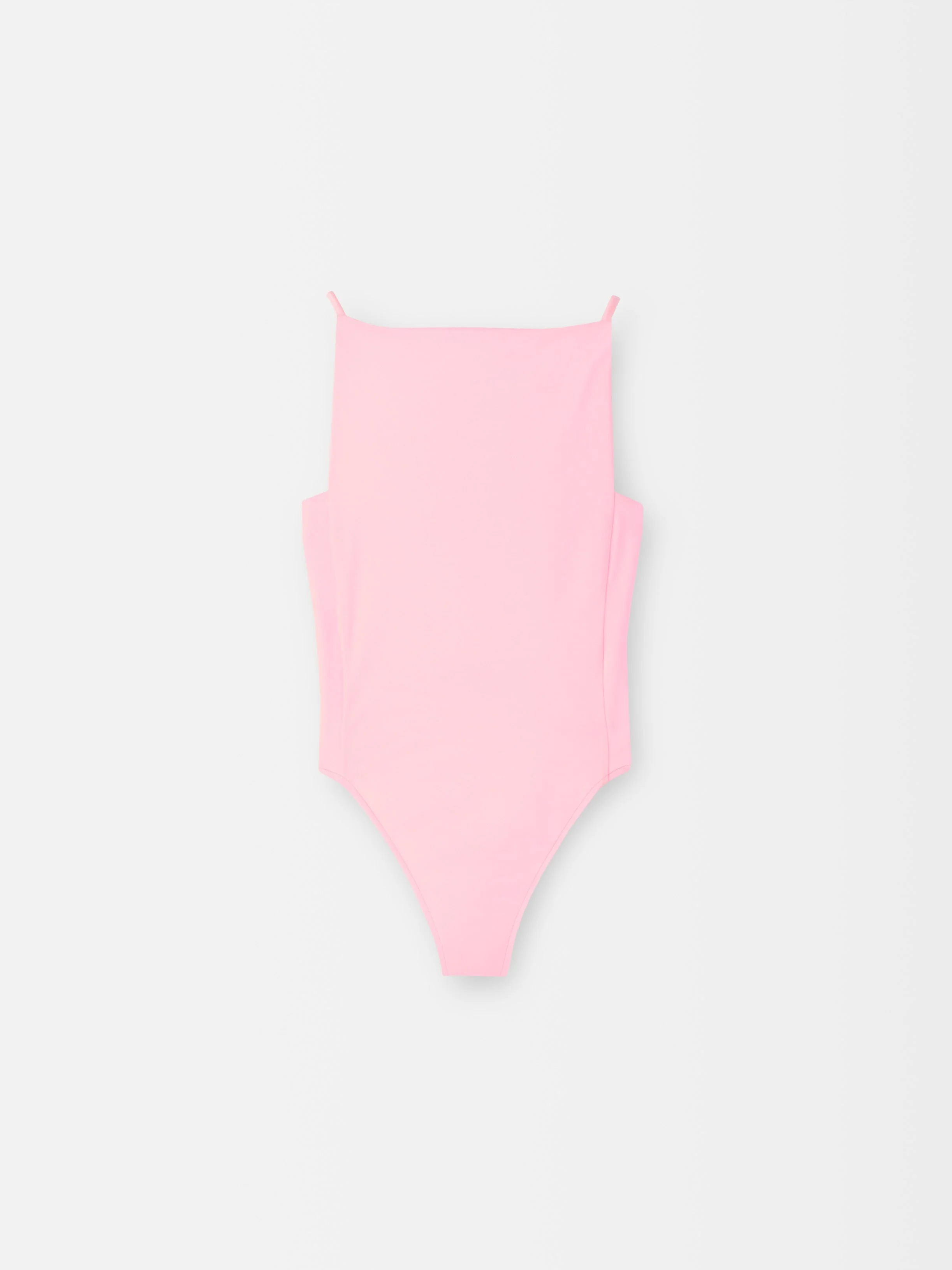 One-piece swimsuit - Scalloped one-piece swimsuit - Fitted shape - Thin non-adjustable straps - Square front neckline - Open-back with a strap and gold metallic detail - Partially open sides - Tanga-cut back The model is 175cm and wears a size XS 80% Polyamide - 20% Elastane Made in Portugal Ref. 251SW041-2311-410