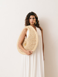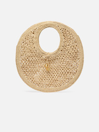 LA CROISIERE Raffia circle bag - Flat woven-raffia basket bag - Knot closure - Gold metal Rond-Carre charms - Reinforced braided edges - Diameter: 55cm - Handle diameter: 21cm 100% Raffia Made in Madagascar Ref. 243BA387-3219-142