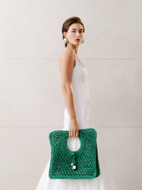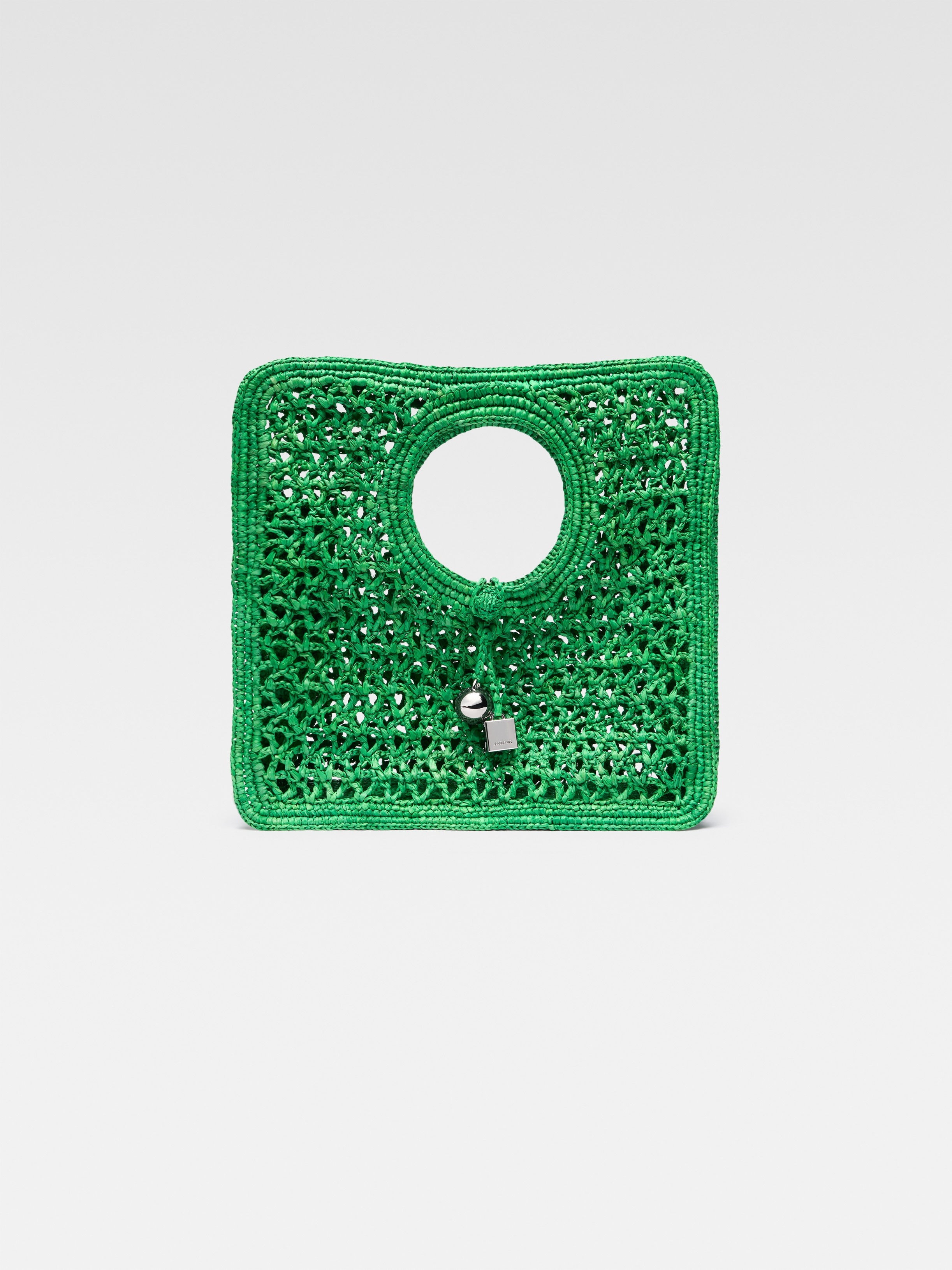 LA CROISIERE Small square raffia bag - Small flat woven-raffia basket bag - Knot closure - Gold metal Rond-Carre charms - Contrast reinforced braided edges - Length: 35cm - Height: 35cm - Width: 11cm - Handle diameter: 11.5cm Each fabric is unique and has been carefully selected by our team. Handwoven, this material can show natural irregularities in the texture and shape of the fibers, contributing to its unique character. To maintain the original condition of this item, we recommend to avoid direct and over-exposure to light and contact with cosmetics, water or heat. We advise to store this item into the dust bag in a dry place. 100% Raffia Made in Madagascar Ref. 251BA421-3219-550