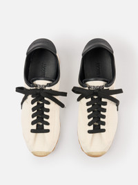 Soft sneakers - Sneakers in canvas and leather - Almond-shaped toe - Flat laces - Embossed logo on the tongue - Embossed logo on the heel tab - Removable contrast leather-covered insole - Rubber outsole in a Rond-Carre shape Please note that these shoes have a slim fit. We recommend choosing one size above your usual shoe size for optimal comfort. 100% Cotton / Outsole: 100% Thermoplastic polyurethane Made in Portugal Ref. FOW00175AW00255130