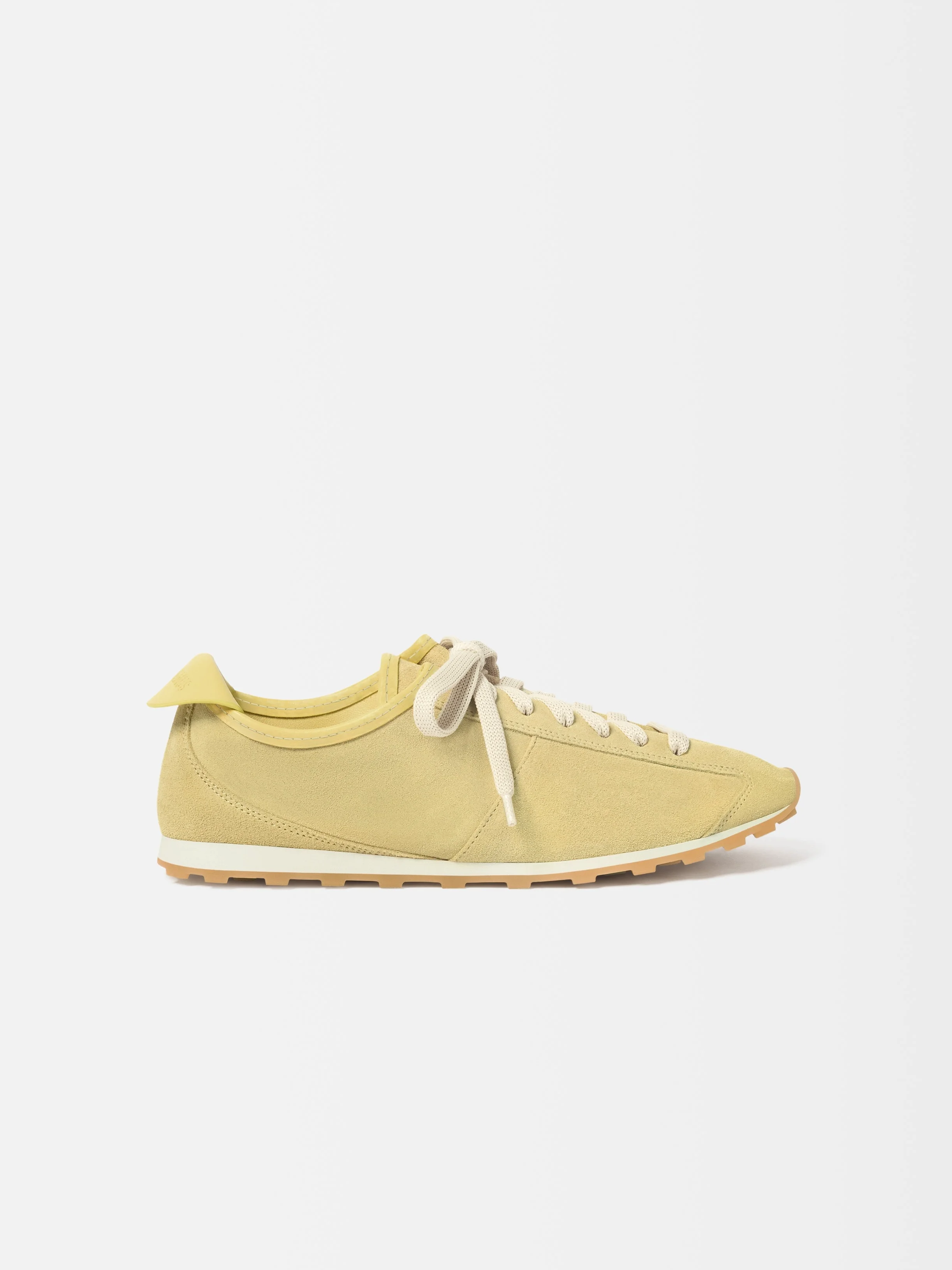 Soft sneakers - Sneakers in soft suede - Almond-shaped toe - Flat laces - Embossed logo on the tongue - Embossed logo on the heel tab - Removable leather-covered insole - Rubber outsole in a round and square shape Please note that these shoes have a slim fit. We recommend choosing one size above your usual shoe size for optimal comfort. 100% Calf Leather / Outsole: 100% Thermoplastic Polyurethane Made in Portugal Ref. FOW00175AC09A06205