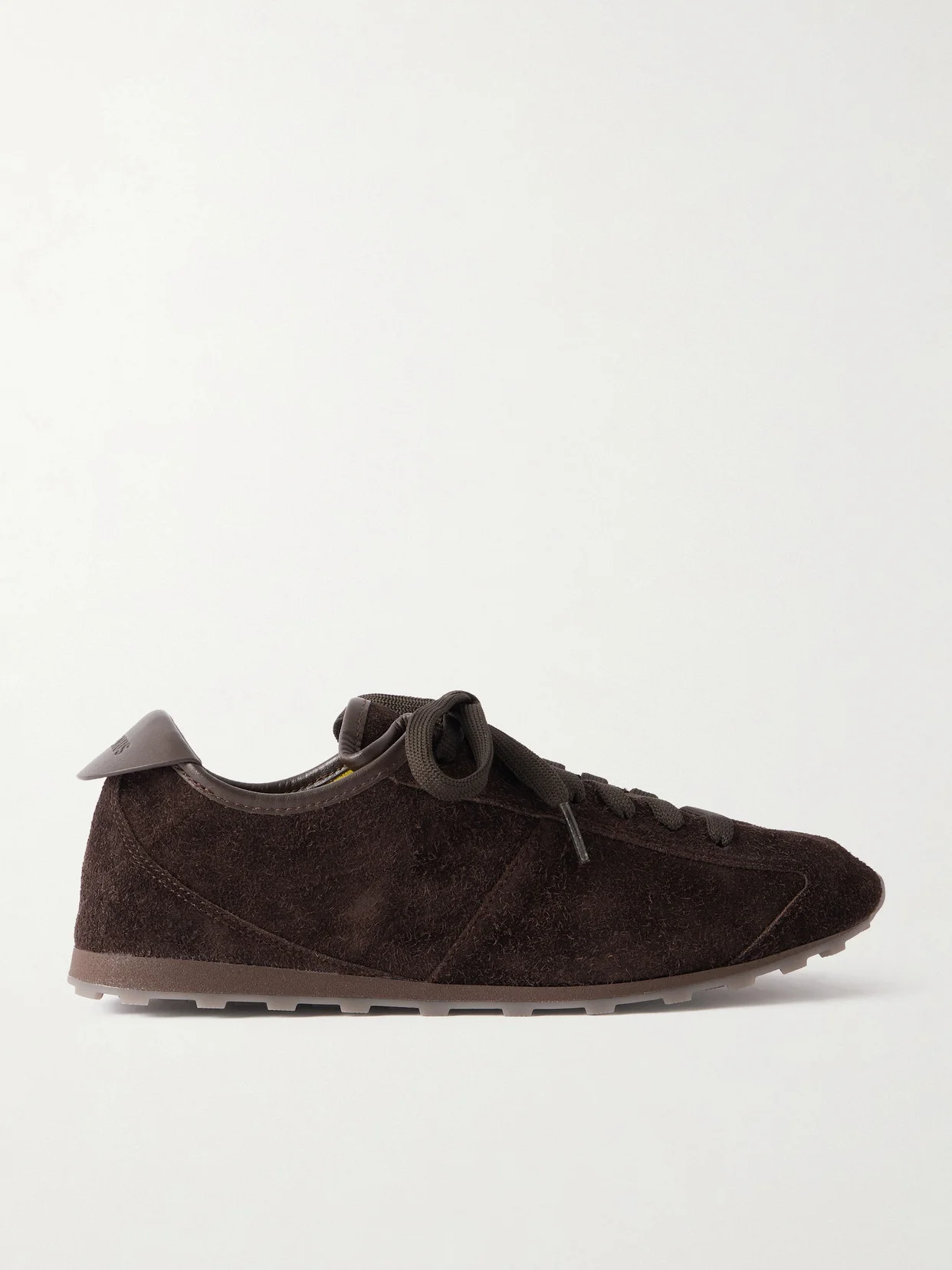 Jacquemus' sneakers are inspired by retro tennis styles. They're made from suede with leather trims and tracked soles that'll grip well on wet streets and clay courts alike.
