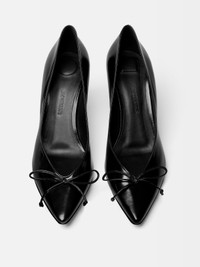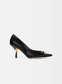 Twisted pump heels - Pump heels in smooth leather - Pointed toe - Small fixed bow - Stitched edges - Lambskin leather insole and lining - 8cm asymmetric twisted heels with lacquered finish - Contrast outsole To protect the leather soles of all shoes, a transparent protective film has been applied to each sole. To remove it, please follow the direction of the arrow in order not to damage the leather sole. 100% Cow Leather / Outsole: 100% Cow Leather Made in Italy Ref. FOW00178AC18A07990