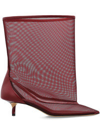 The Tourni mesh boots Highlights - Burgundy - Mesh overlay - Pointed toe - Kitten heel - Calf leather details Made in France Composition Outer: Calf Leather 100% Lining: Polyamide 100% Sole: Calf Leather 100%
