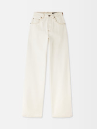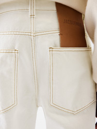Oversized jeans - High-rise - Off-white denim - Contrast stitching - “J” belt loop - Engraved metal button fly - Five pockets including ticket pocket - Long wide leg - Embroidered patch on the back - Back yoke - Back patch pockets with laser-printed logo 100% Cotton / Lining: 65% Polyester - 35% Cotton Made in Italy Ref. PAW00036AD0004011C