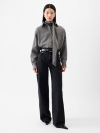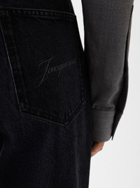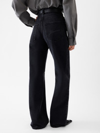 Oversized jeans - High-rise - Washed black denim - “J” belt loop - Engraved metal button fly - Five pockets including ticket pocket - Long wide leg - Embroidered patch on the back - Back yoke - Back patch pockets with laser-printed logo 100% Cotton / Lining: 65% Polyester - 35% Cotton Made in Italy Ref. PAW00036AD00039990