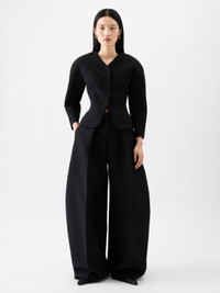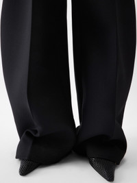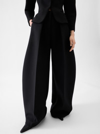 Ultrawide curved pants - High-rise - Structured poly-cotton - Waistband with belt loops - Zip fly with hook and button - Side-seam pockets - Stitched pleats - Wide curved leg - “J” belt loop in the back The model is 177cm and wears a size 34 100% Polyester / Lining: 55% Cotton - 45% Polyester Made in France Ref. PAW00621AW00633990