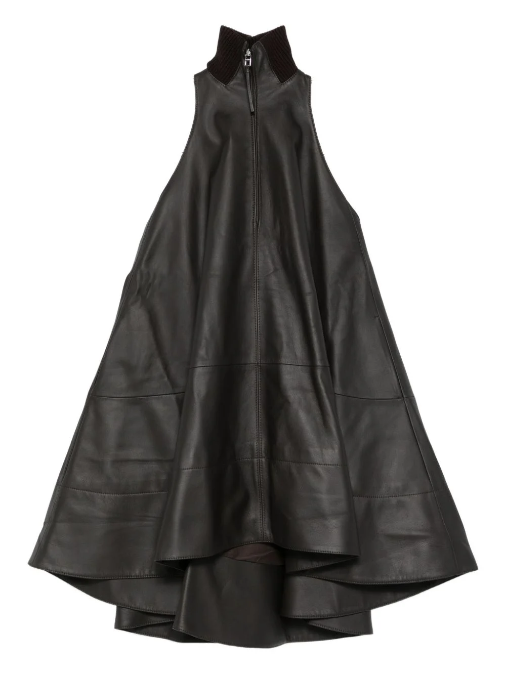 panelled zip-up dress Highlights - Black - High neck - Front zip fastening - Panelled construction - Sleeveless Made in France Composition Lining: Viscose 52%, Cotton 48% Outer: Lamb Skin 100% SIZE & FIT Model measurements Height 5 ft 11 in(1.8 m) Bust/Chest 31.49 in(80 cm) Hips 36.61 in(93 cm) Waist 24.4 in(62 cm)