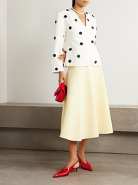 Jacquemus' 'Triangle' skirt is paneled to flare artfully at the hem. It's made from crepe in the season's irresistible butter yellow. Size & Fit - Fits true to size, however those who are between sizes should take the smaller size - Midi-length, designed to be worn at the waist - Mid-weight, non-stretchy fabric - Model is 177cm/ 5'10" and is wearing a FR 34 Model measurements: - Bust: 85cm/ 33.5" - Waist: 65cm/ 25.5" - Hip: 91cm/ 36" Details & Care - Light-yellow crepe - Concealed hook and zip fastening at side - 70% polyester, 30% viscose - Unlined - Dry clean