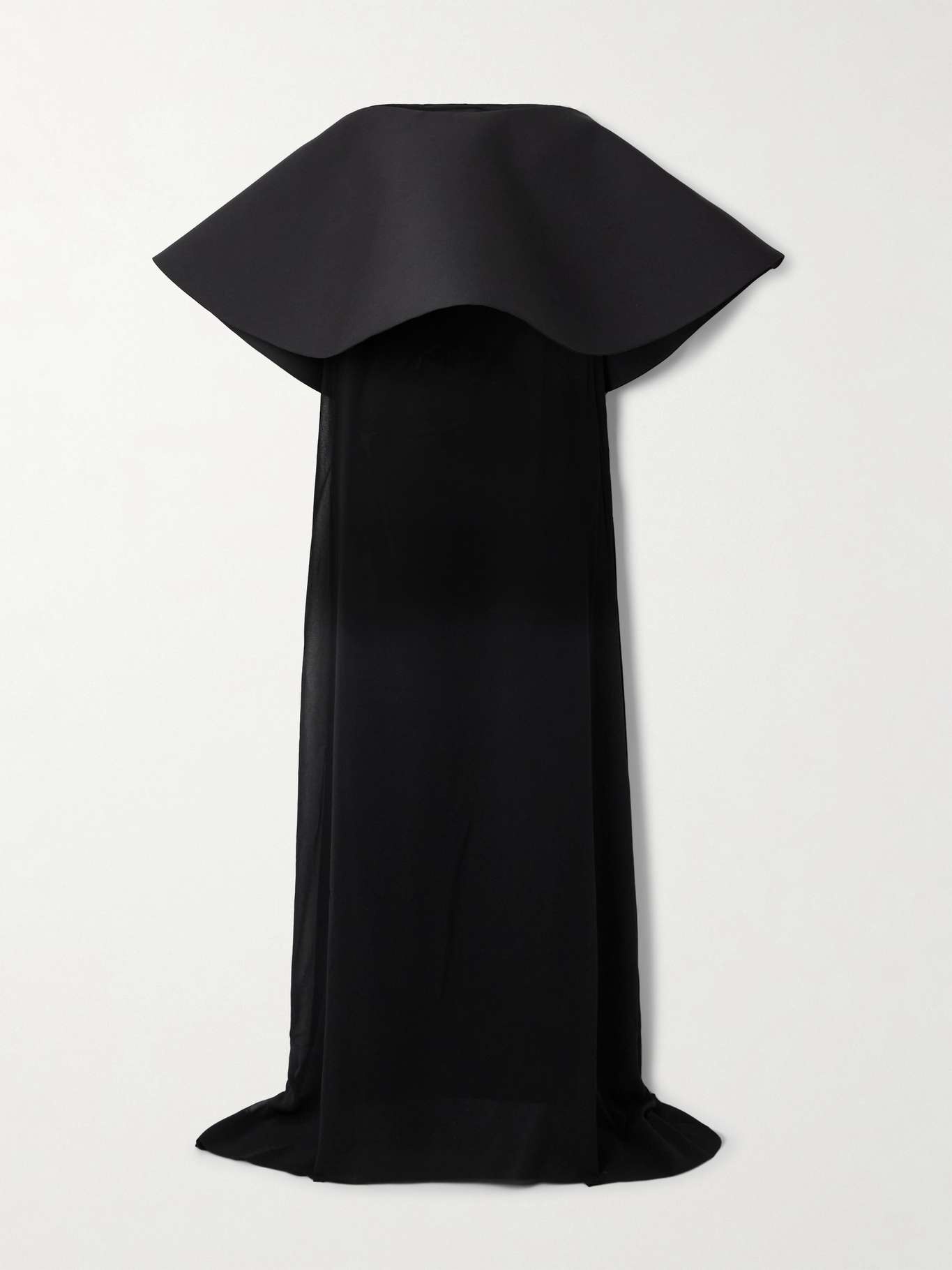 EDITORS'NOTES Jacquemus' Fall '24 'La Casa' collection is filled with sculptural designs that blend elegance and sensuality. This 'La Robe Vela' gown is made from airy chiffon that floats over your frame and has a dramatic wool and silk-blend overlay cascading from the strapless neckline. The internal boning adds structure, and the back buckle adjusts the fit. SIZE & FIT Model measurements: - Fits true to size, however those who are between sizes should take the smaller size - Designed for a close fit - Loose overlay - Designed with a slim-fitting slip - Lightweight, non-stretchy fabric - Model is 180cm/ 5'11" and is wearing a FR 34 - Bust: 81cm/ 32" - Waist: 63cm/ 25" - Hip: 91cm/ 36" DETAILS & CARE - Black wool and silk-blend and chiffon - Buckle and concealed hook and zip fastening at back - Fabric1: 71% wool, 29% silk; fabric2: 100% polyester; lining: 69% polyamide, 31% elastane - Dry clean